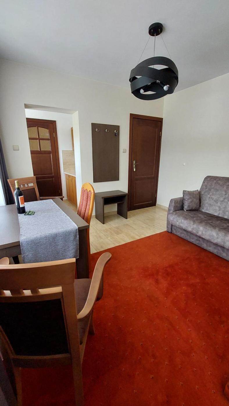 Apartament Rodzinny z 1 sypialnią. This apartment consists of 1 living room, 1 separate bedroom and 1 bathroom with a shower and a hairdryer. The well-fitted kitchen has a stovetop, a refrigerator and kitchenware. This apartment features a tea and coffee maker, flat-screen TV with cable channels, mountain views, as well as winechampagne for guests. The unit offers 2 beds. Apartament - 4 osobowy. Powierzchnia pokoju ok.: 35 mkw. ;