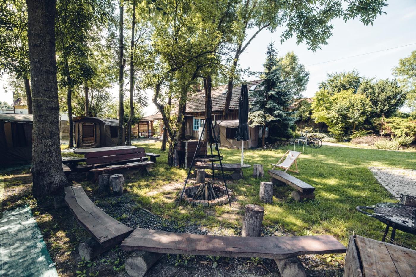 Namiot. The tent provides a washing machine, a seating area, as well as a shared bathroom featuring a shower and a hairdryer. The tent features a dining area, outdoor furniture and garden views. The unit offers 2 beds. Namiot - 2 osobowy. Powierzchnia pokoju ok.: 7 mkw.