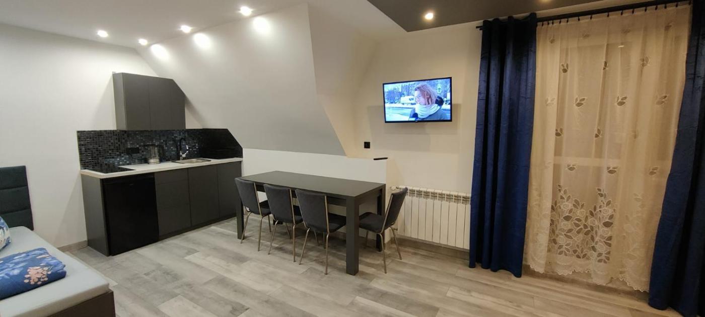Rodzinny apartament typu Studio. The studio features a private entrance, a tea and coffee maker, as well as a private bathroom boasting a shower and a hairdryer. Guests can make meals in the kitchenette that features a stovetop, a refrigerator, kitchenware and an oven. The studio provides a flat-screen TV, a dining area, a wardrobe, heating as well as garden views. The unit has 3 beds. Studio - 4 osobowy. Powierzchnia pokoju ok.: 35 mkw. ;
